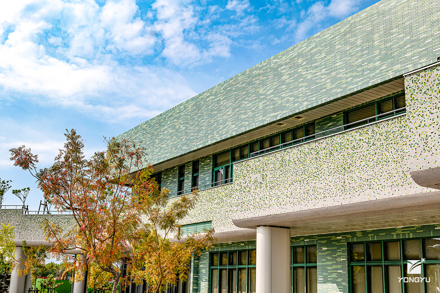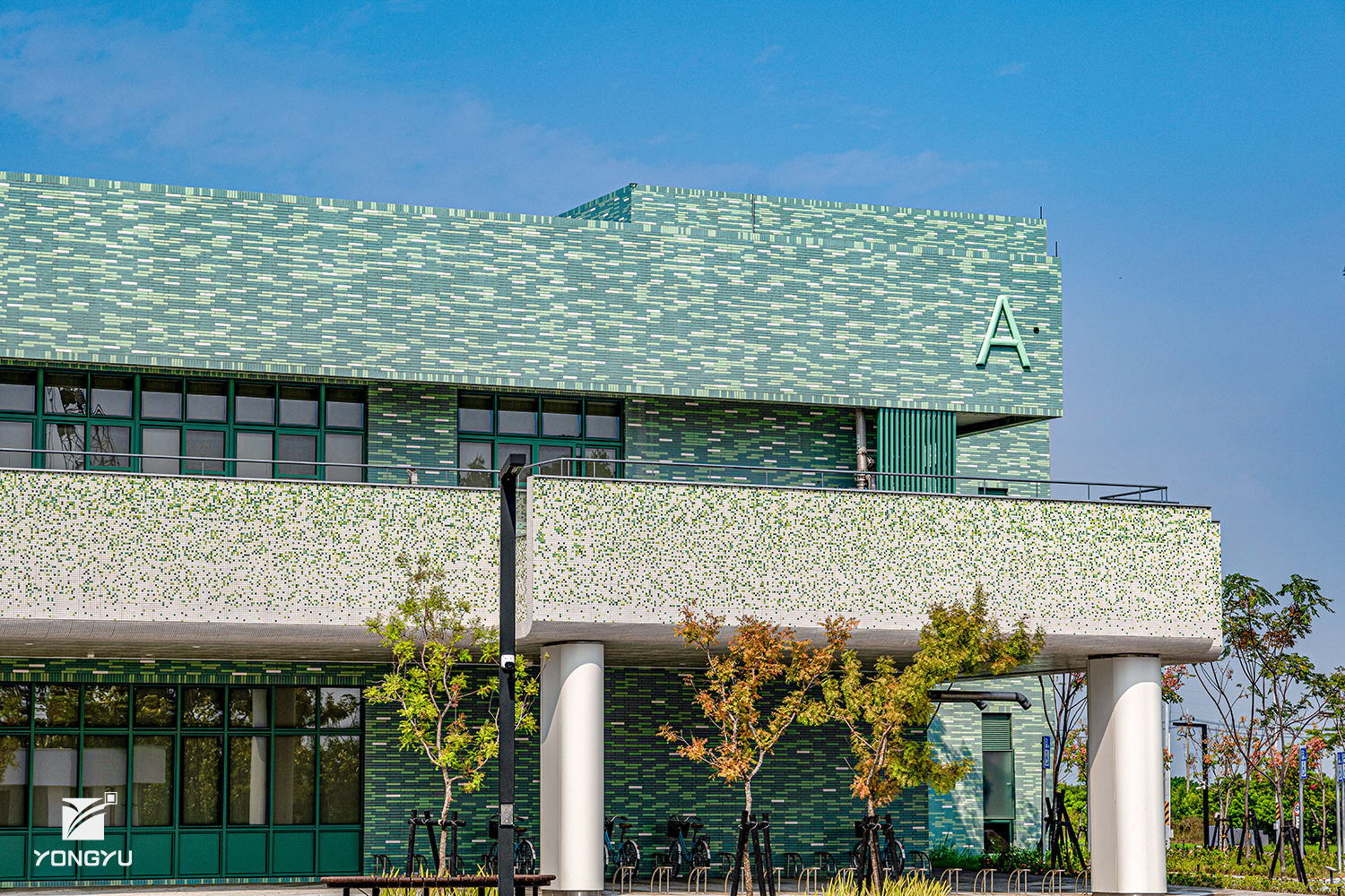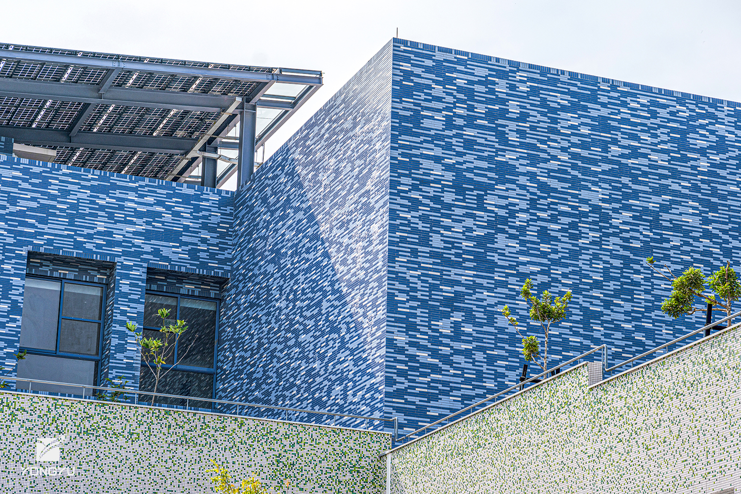 建案名:海洋科技產業創新園區 建設/營造:豐譽營造 建築設計:程景煌/郭英釗建築師事務所 尺寸:240x40mm 數量:220萬支 地址:高雄市茄萣區正大路500號 模面:平面 白、淺綠、深綠、淺藍、深藍