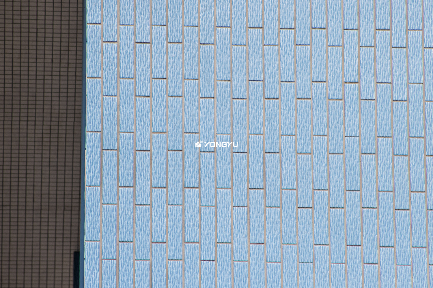 建案名:新濠一川 建設/營造:新濠建設/華熊營造/宗輝營造 建築設計:金以容/林弘壹/朱弘楠建築師事務所 尺寸:195x45mm 數量:200.7萬支 地址:新北市板橋區環河西路四段、懷德街201巷 模面:水波紋(深灰、淺藍、藍綠、深藍)